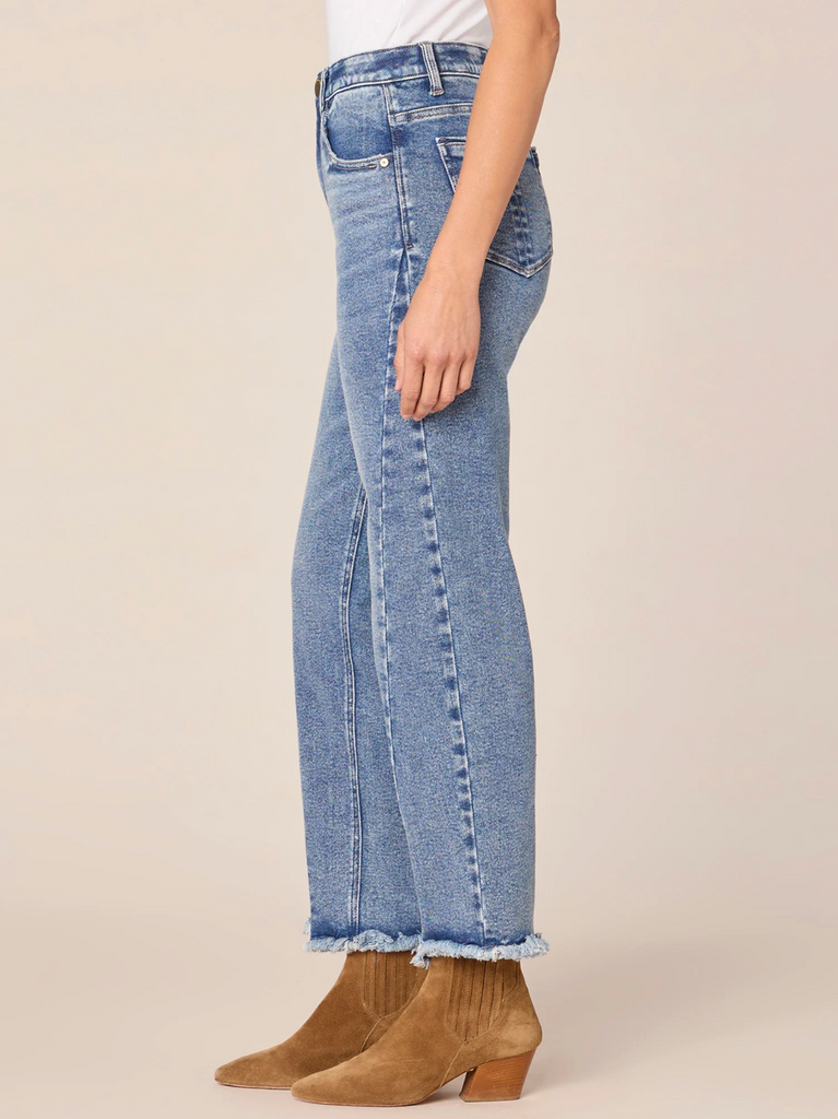 Democracy "Ab"solution High Rise Ankle Length Straight Leg Jeans with Frayed Hem
