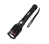 The Redline 6K is a powerful, waterproof (IP67), 6,000 lumen LED rechargeable flashlight that features a 4x adjustable zoom and new optimized C·O·B™ technology housed inside of an anodized aircraft-grade aluminum body, making it waterproof in up to 1 meter of water for up to 30 minutes, plus impact resistant for drops up to 1 meter. This LED rechargeable flashlight is USB rechargeable and can also double as a power bank for your other USB devices. The Closed Loop Temperature Control feature automatically monitors and adjusts the output to regulate the temperature of the light for improved safety.